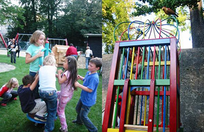 Der idyllische Zauberflötenspielplatz ist besonders farbenfroh gestaltet und wird von den Kindern mit Begeisterung angenommen.