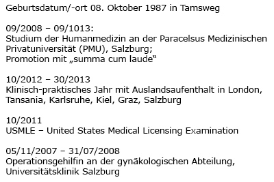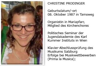 Die Pongauerin Maria Kollmann aus Mühlbach am Hochkönig wird seit Studienbeginn im Jahr 2003 von Frau Gertraud Ruckser-Giebisch großzügig mit einem Stipendium unterstützt.