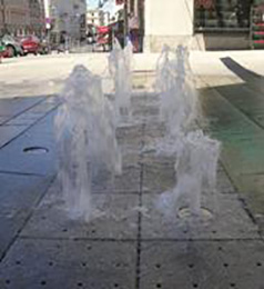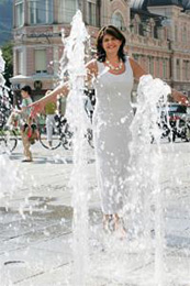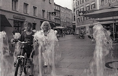 Der ebenerdige Brunnen am Platzl, an der rechten Altstadtseite schließt die Neugestaltung des beliebten Treffpunktes ab. Errichtet wurde der Brunnen mit wechselnden Wasserstrahlen nach den Plänen von Architekt Eduard Widmann.